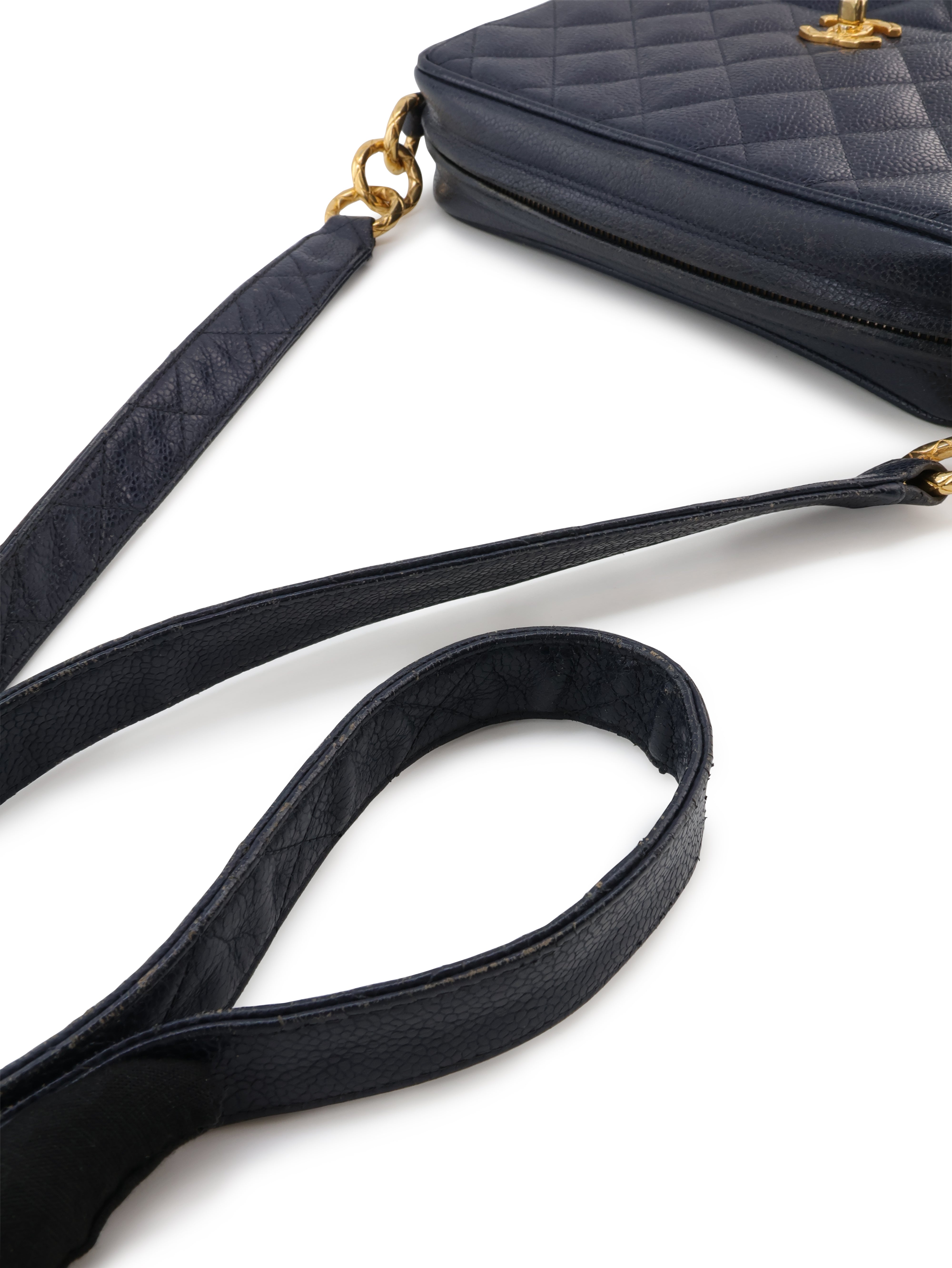 - Exterior: Light scuffing and creasing on the exterior and strap. Minor scratches on the hardware